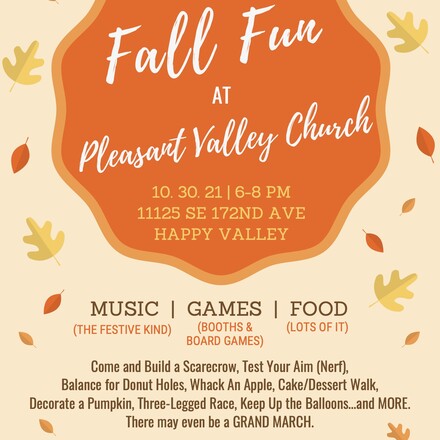 The halls rang with laughter and conversation at Pleasant Valley Church on Saturday evening, Oct. 30, 2021. The Fall Fun event, with games, crafts and food, had an attendance far beyond expectations. Initially planned for 100 people, the team serv...