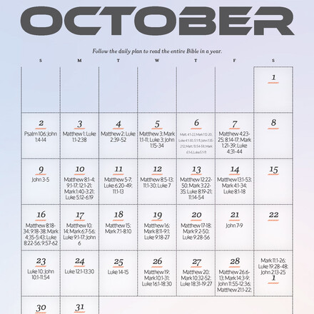 Bible Readings for October 2022 Follow the daily reading plan and you will read the entire Bible in a year. Read more