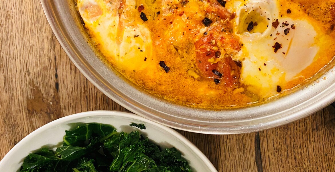 Polenta Bowls With Smoky Tomato Sauce, Poached Eggs and Wilted Kale